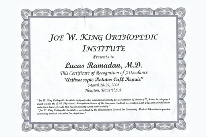 Dr. Lucas Ramadan é ortopedista com mais de 20 anos de formação pela FMUSP, especializado em Ombro e Cotovelo, com vasta experiência em lesões e traumas articulares.